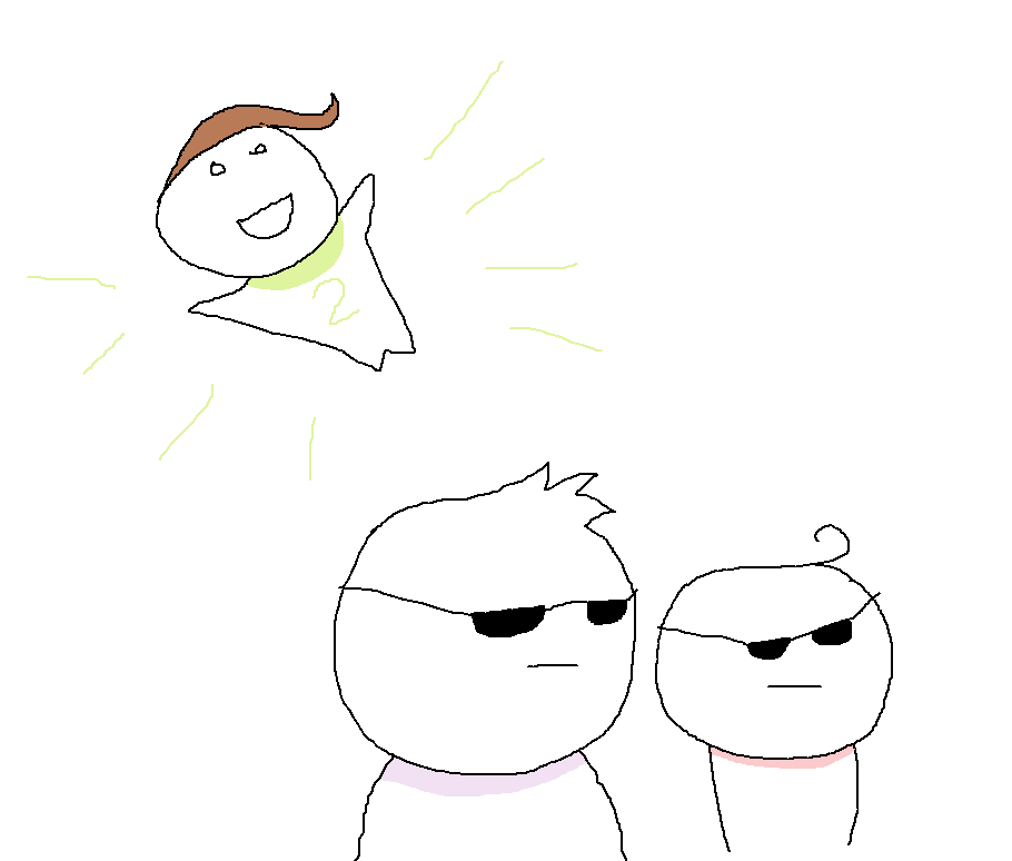 Still want to call me racist, even after reading those funny pictures? Well, guess what, sucka? I’ve never mentioned my race or my gender on this blog. If you assume I’m a white man just because I draw myself with no skin color and a square body then YOU’RE THE HETERO-NORMATIVE RACIST BIGGOT. Mwahahaha.